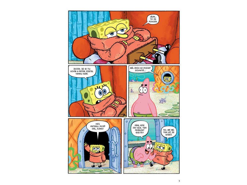 Tentokrát SpongeBob podlehne magickému vlivu teplého svetru. Také zjistí, že když vám dorůstají ruce, s těma utrženýma se dá užít spousta legrace. Blbej burák je zmrzlinová restaurace v Zátiší Bikin, ale když se dostane i na divadelní jeviště, musí se do toho vložit Patrik. A piráti milují komiks – jinak je čeká prkno!