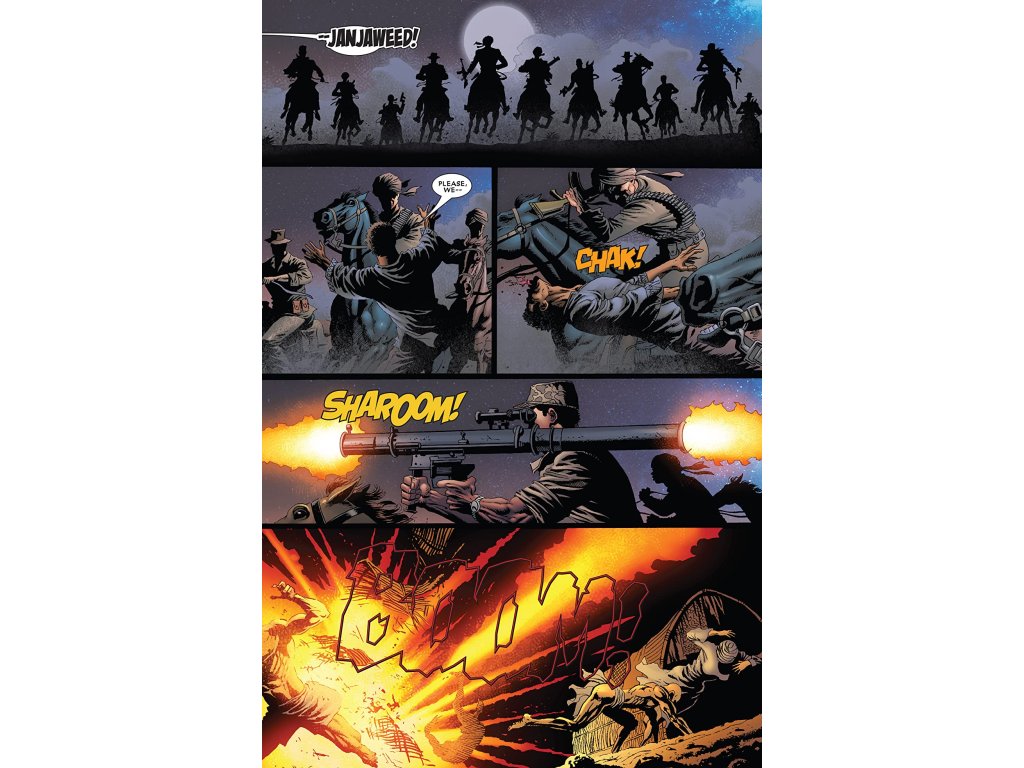 What could draw these two heroes into the biggest of all smackdowns? Nothing less than genocide. In this ripped from the headlines story, Marc and Paul Gulacy explore the real-world tragedy that is going on right now in Darfur.
