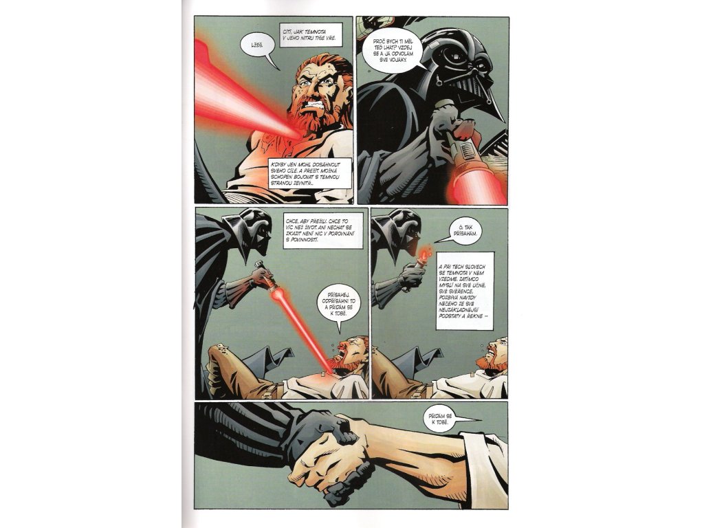 Rytíř Jedi Gira se snaží zachránit poslední jediské padwany před smrtí z ruky Dartha Vadera.