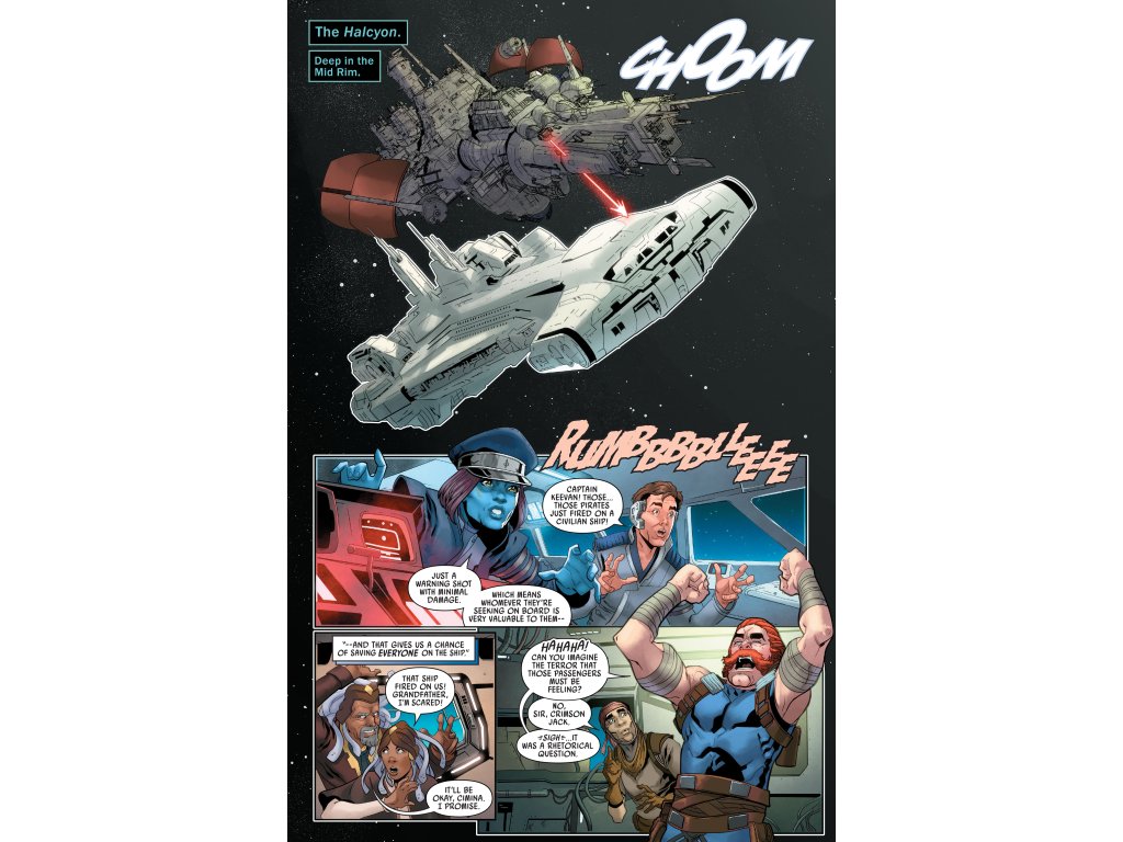 YOUR TICKET TO THE HOTTEST RIDE IN THE GALAXY! The HALCYON comes under fire from pirates—with little chance of escape! Who is the mysterious Resistance spy on board that may lead to the fiery end of the ship’s 275-year run? And find out how, years earlier, bounty hunter AURRA SING and a mysterious partner gambled with their lives during the galactic starcruiser’s era as a flying casino!