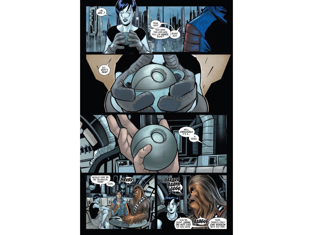 “GET IN THERE, YOU BIG, FURRY OAF!” What’s inside the urn that Jabba the Hutt wants so badly? Hint: It’s not ashes. Guest-starring Ugnaught Sava Korin Pers. This issue ties in directly to Revelations! What’s inside the urn that Jabba the Hutt wants so badly? Hint: It’s not ashes.