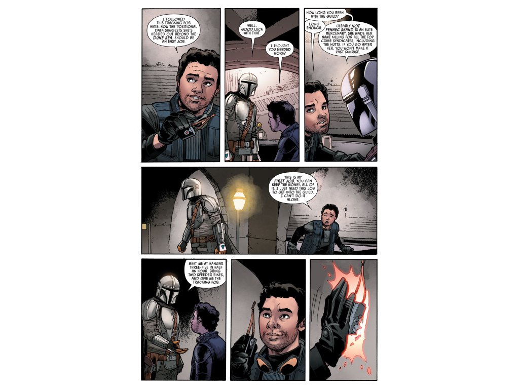 On a familiar desert planet, the Mandalorian helps a rookie bounty hunter who is in over his head.
