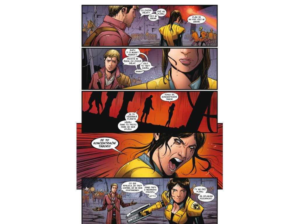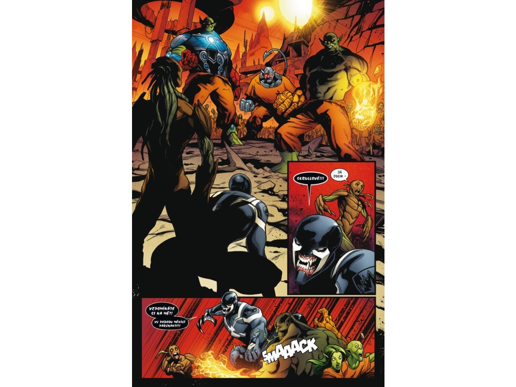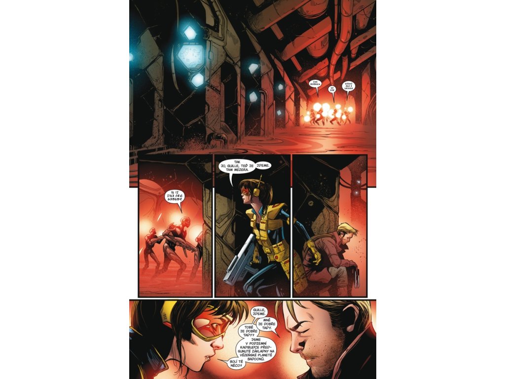 PETER QUILL SE VRACÍ DO TÝMU! Co to ale znamená pro Kitty Prydeovou? Je marvelovský vesmír dost veliký pro dva Star-Lordy? To zjistíte, když se Strážci rozhodnou postavit na odpor novému galaktickému řádu. Thingovi se možná stýská po některých pozemských věcech, ale uznává, že i pobyt ve vesmíru má své výhody. Dá se v něm například útočit pádem z oběžné dráhy! Venom a Groot mají zase plné spáry a větve boje se skrully – a všichni víme, že když Bendis píše o skrullech, nevzejde z toho nic dobrého! Dva nejnebezpečnější válečníci galaxie, Gamora a Drax, pro změnu přenesou boj na území Badoonů. A čeká nás dramatický návrat jedné postavy! Strážci jsou sice hledaní po celé galaxii, ale stráží pořád stejně úspěšně!