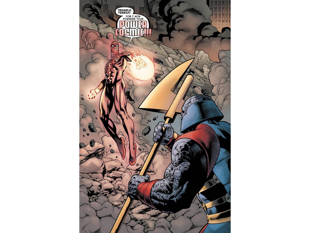 Outpowered and outclassed by Terrax, Otto Octavius somehow turns himself into the COSMICALLY POWERED SUPERIOR SPIDER-MAN! This may not be enough to defeat Terrax, but even if it is, is the world ready for an Otto Octavius with this level of power?!