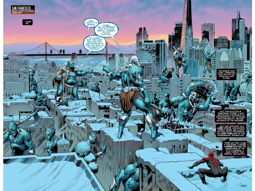 Like the rest of America, the West Coast is overrun with Frost Giants and in chaos! But Otto Octavius doesn't settle for chaos and will win the War of the Realms single-handedly. Well, maybe not single-handedly. He needs minions. Super-minions! So he recruits the West Coast Avengers! Uh-oh.