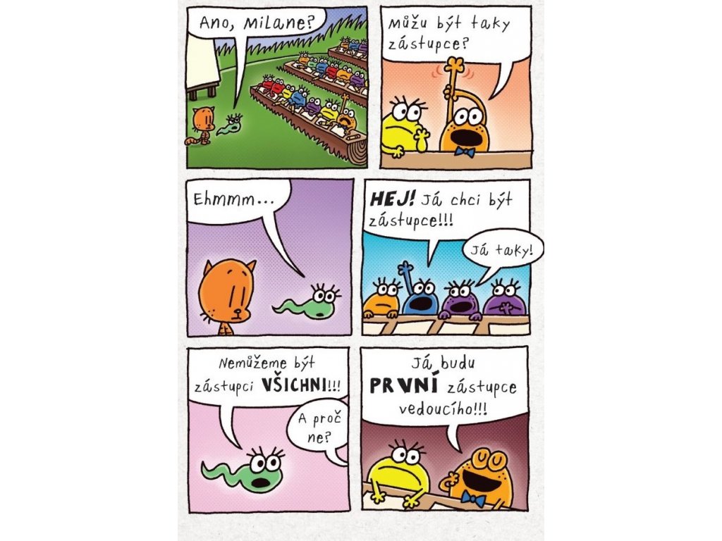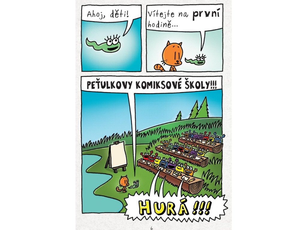 Přečetli jste všechny Dogmany? Vítejte v Peťulkově komiksové škole! Je to stejně parádní zábava. Učí se tu tedy hlavně pulci, ale jistě se pro vás místo najde. Naučíte se, co všechno má takový dobrý komiks obsahovat. No, naučíte – pokud na to ovšem dojde, protože pulci se v jednom kuse hádají. Třeba kdo bude zástupce vedoucího. Nebo kdo má hloupější komiks. Ale tak aspoň si užijete ukázky skvělých prací komiksových žáků – například: O zubním kartáčku, který chtěl být advokátem dinosaurů. Nebo Vazoun McPavoučí zadek, Žabičkové komando a mnohé další umělecké výtvory. Ovšem hlavně, hlavně se pořádně zasmějete a královsky pobavíte!