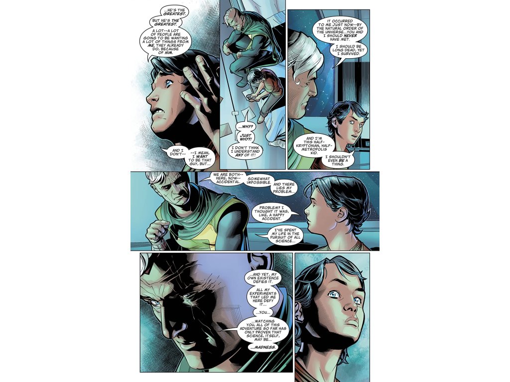 The epic secrets of Superman continue to unfold! A few months in space with his paternal grandfather Jor-El changed Jon Kent forever. With Jon now seeking help from his father, the Man of Steel must learn about the war his son and father fought together and set right the wrongs his father may have unleashed on other worlds. See what changed Superboy in such radical ways as the Unity Saga continues.
