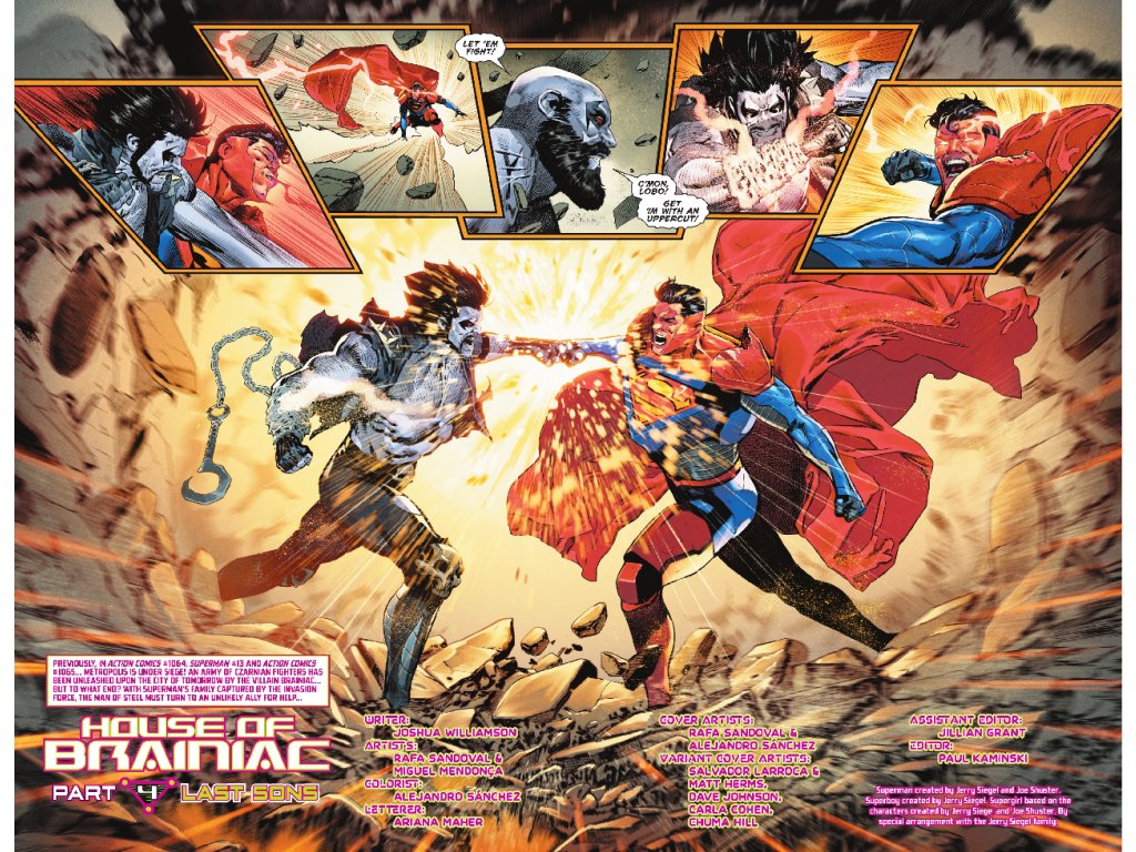 DING, DING, DING… SUPERMAN AND LOBO… FIGHT?! The partnership was shaky at best, but now it's exploded! Lobo has betrayed Superman, and it's on now! Even if they stop punching each other long enough to save the day… it's too late! Brainiac has what he needs… and the Brainiac Queen is ALIVE.