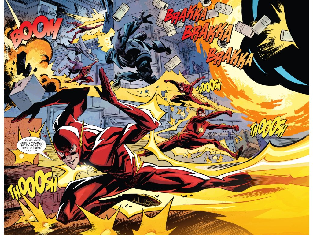 Barry has learned to control his powers and is finally starting to feel like the hero he’s always dreamed he could be. But then a showboating new villain going by the name, the Top shows up looking to test his abilities and make some cash selling his weapons after showing how they can take out the Flash! Barry will need to use every skill he’s picked up along the way if he’s going to stop this topsy-turvy terror!!
