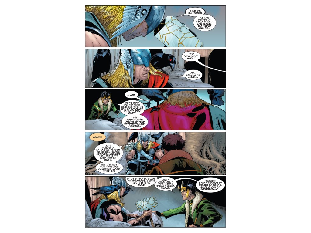 thor asks loki to repair the Bi-Frost Bridge after thor destroyed it while under in influence of Hulk's gamma radiation. The task seems overwhelming for even loki, and that is when loki suggests not fixing the bidge but instead using other magics. thor agrees to try it but when loki opens a portal a demon comes through into Asgard.