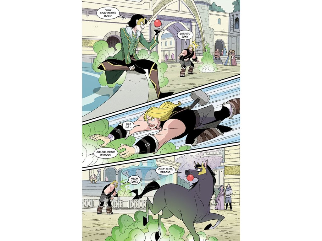 Jsou to bratři, bohové a Odinovi synové – jenže Thor a Loki spolu nevycházejí! Obzvláště proto, že Loki každou chvíli úskokem přiměje Thora k něčemu, co ho dostane do průšvihu. Jak by ale bůh hromu mohl říct ne Lokiho výzvám – například, aby se vplížil do Odinovy pokladnice?