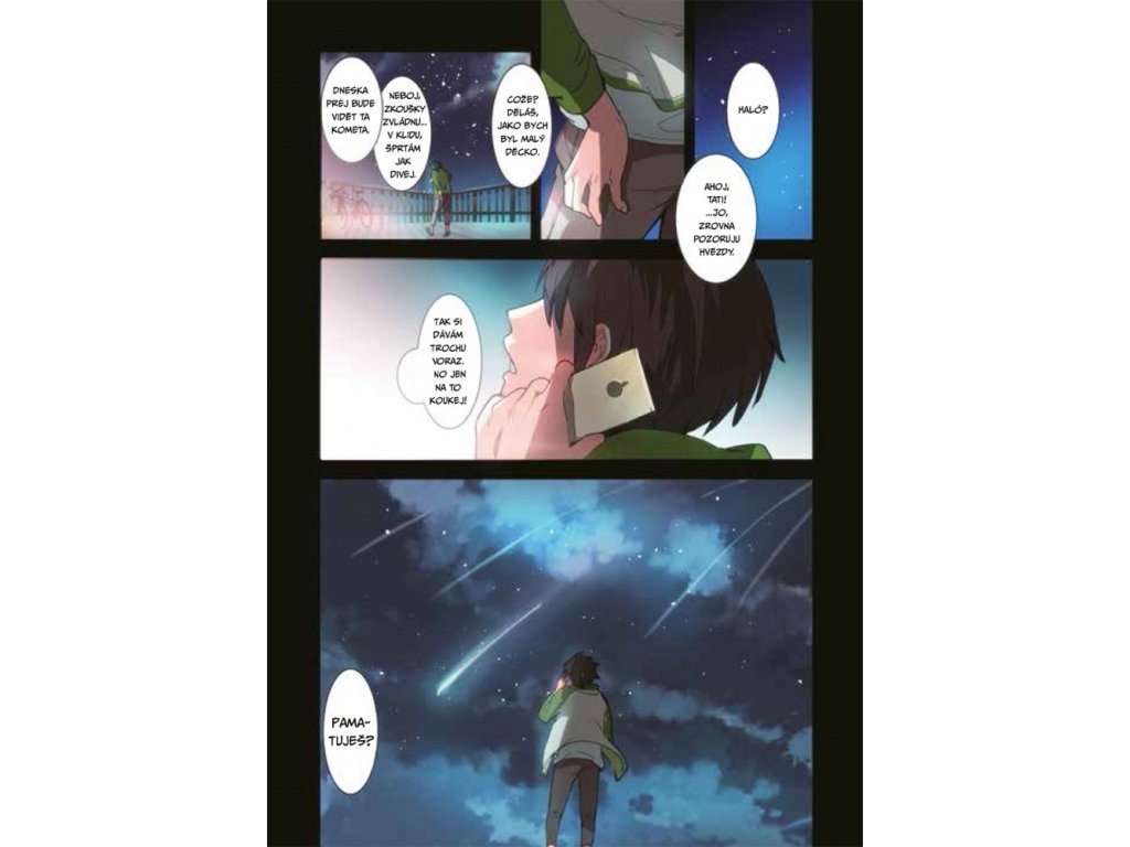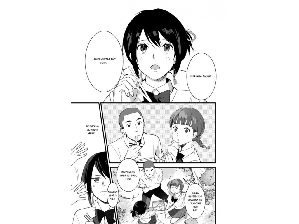 Co se stane, když venkovskou dívku, kterou nutí rodina (na střední škole! Ta ostuda!) dodržovat nesmyslné tradice spojené s něčím tak nezajímavým a starobylým jako… folklorem a obřady? Vykřičí nespokojenost do světa… a dojde k tomu,co si přála: vymění si tělo s úplně někým jiným. Jak se bude najednou chovat jako sebevědomý, bezstarostný velkoměstský kluk? A co teprve, když v tom začne hrát roli blízkost někoho,kdo vám díky nečekané změně začne rozumět? V tomto příběhu plném setkávání, míjení a hrozeb z minulosti i budoucnosti, které plynou z nepředloženého kroku, není nic jednoduché. Dokážou nakonec oba překonat osud, čas a nebezpečí spojené s vesmírem i přírodou?