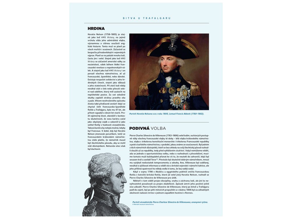 Doplnění komiksu tvoří příloha, která popisuje události vedoucí k této zásadní bitvě. Seznámíte se s životními příběhy velitelů obou flotil, s jejich vyzbrojením a taktikou během napoleonských válek a odhalíte okolnosti, které vedly k smrti Horatia Nelsona, hrdiny i oběti této bitvy.