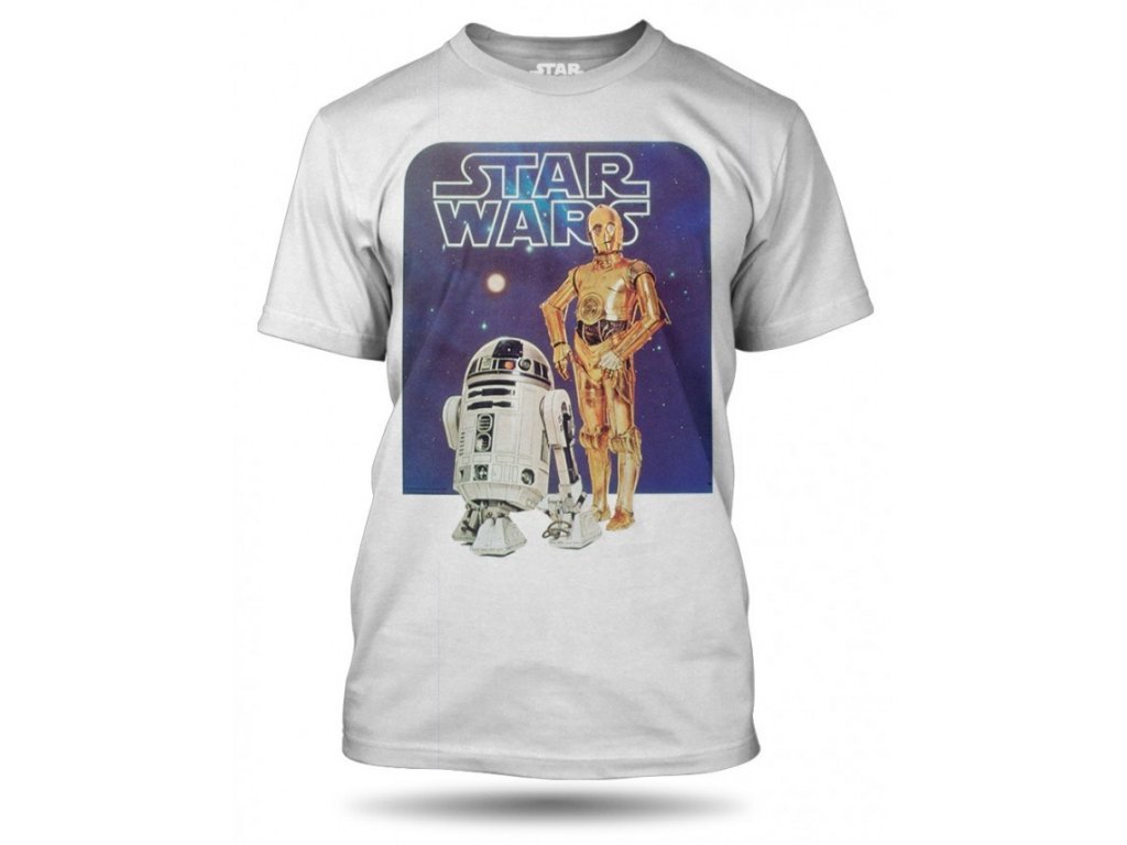 Tričko zachycující dva slavné roboty ze ságy Star Wars udělá radost každému fanouškovi.