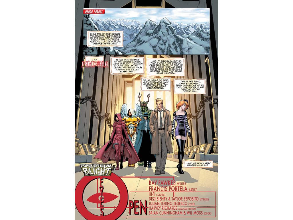 "Forever Evil: Blight" part 13, continued from CONSTANTINE (2013- ) #11. Pandora and The Justice League Dark race to save the world's mystics from The Crime Syndicate.