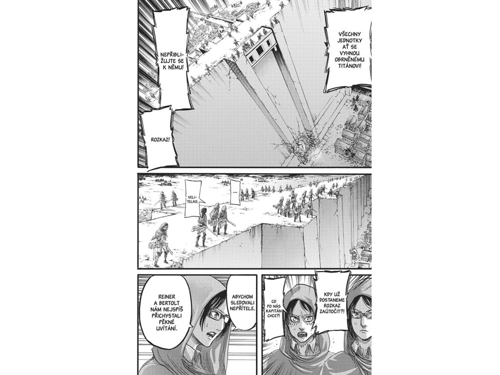 Průzkumníci se pouštějí do posledního zoufalého boje za účelem dobytí Zdi Maria, aby jednou provždy porazili Titány. Eren musí použít své nové schopnosti, aby ucpal díry vzniklé před pěti lety… a především, aby se dostal do sklepení svého rodného domu a odhalil tajemství, které se tam skrývá.