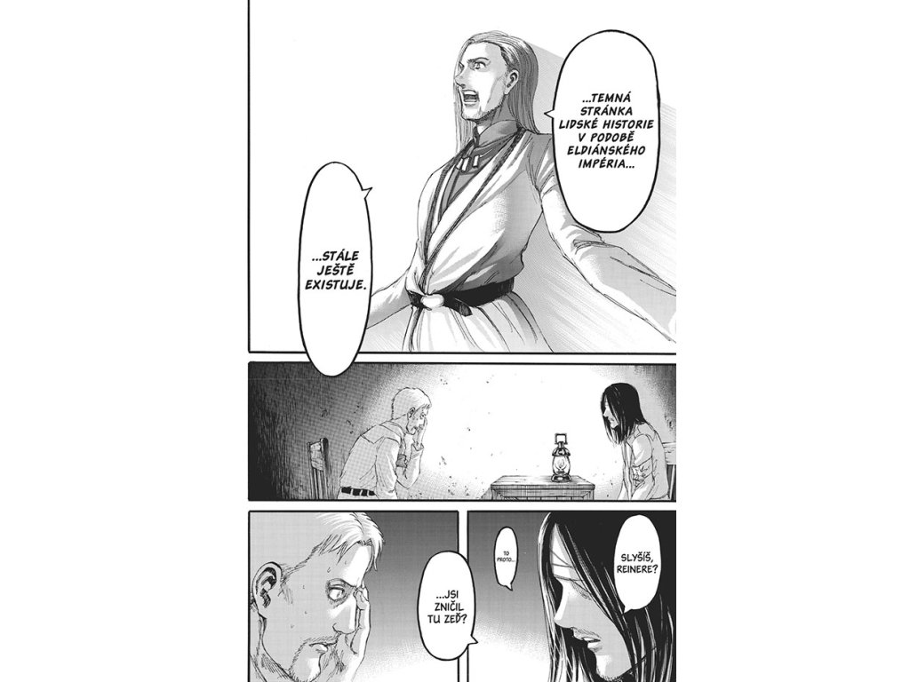 Eren a Reiner se po letech setkávají a jejich rozmluvou vrcholí i vyhrocená situace v ghettu, kde se zástupce Marleyské říše Willy Tybur chystá vyhlásit válku ostrovu Paradis. Po téhle noci už nebude cesty zpět – ani pro Erena, ani pro mladé eldiánské vojáky, kteří čekají na svou příležitost prosadit se v boji a stát se Titány. Ti všichni budou za své ambice muset zaplatit velmi vysokou cenu...