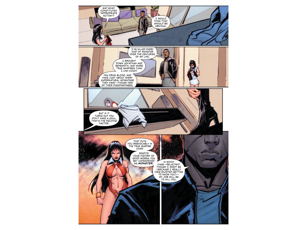 Does Vampirella have a soul? That is the question being asked by an immortal wizard-king who has come to determine her fate. If she does, she will be spared. If not, he must destroy her. No matter how charming he finds her...