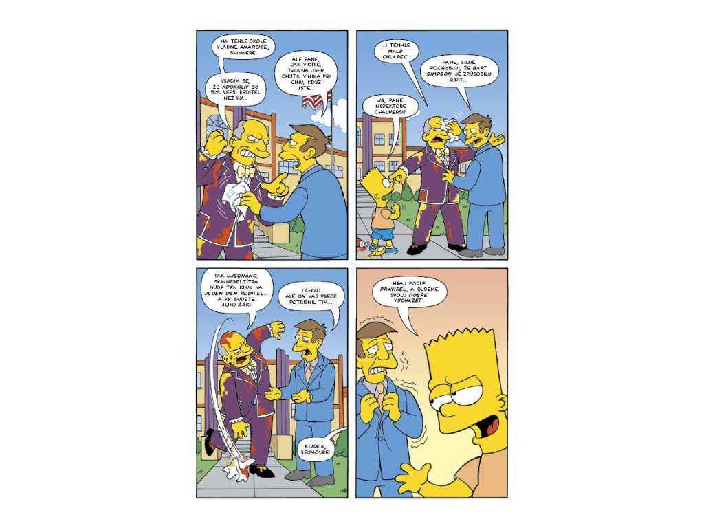 Nejdříve Bart nahradí Seymoura Skinnera ve funkci ředitele a Springfieldská základní škola už nikdy nebude jako předtím. Pak se tomu malému rošťákovi dostane do rukou nejnovější vynález profesora Frinka a věci se poněkud vymknou kontrole a přerostou všem přes hlavu. A když k tomu navíc přidáte Bartův nejnovější komiksový výtvor, Tátu Pruďase, nebo třeba plán, jak z Ralpha Wigguma udělat nejobávanějšího kluka na škole, budete se s Bartem Simpsonem válet smíchy celou cestu do ředitelny!