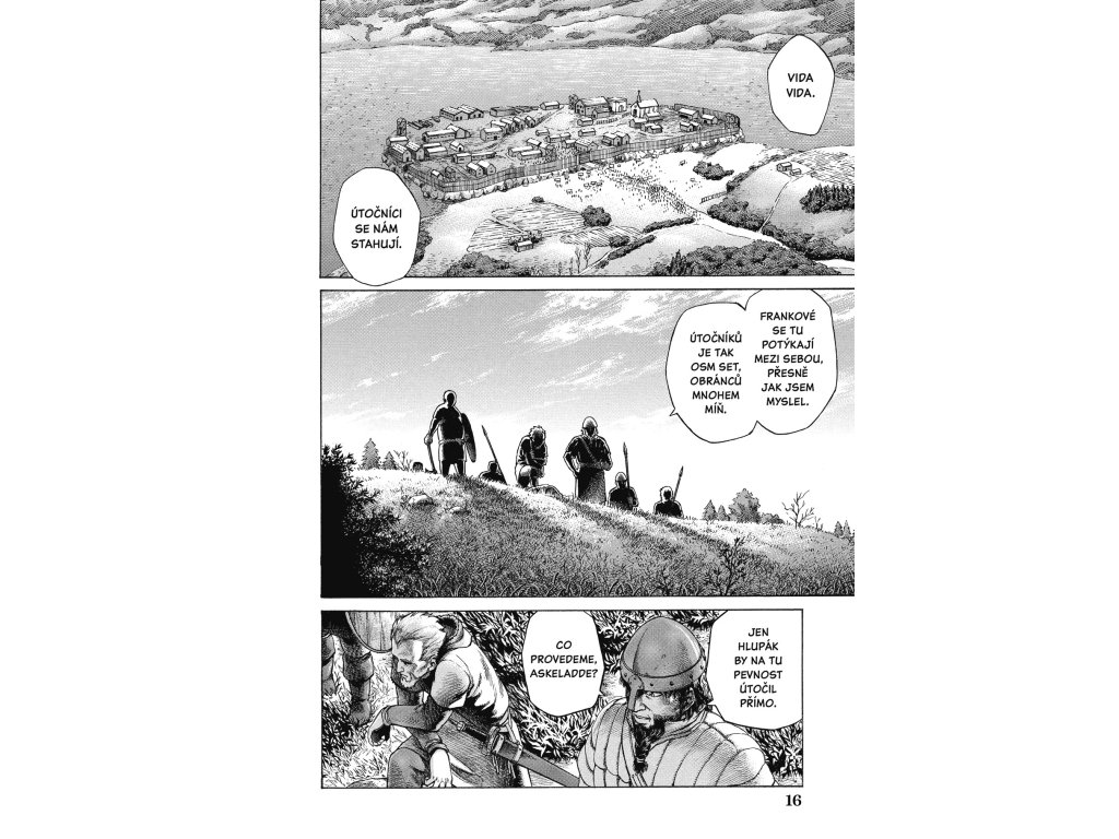Tahle legendární manga, ve které se hrdina vydává na životní pouť, která ho zavede až do mýtického Vinlandu, mistrně kombinuje autentickou historii, dechberoucí akci a zamyšlení nad válkou, mocí, svobodou a cenou lidského života.