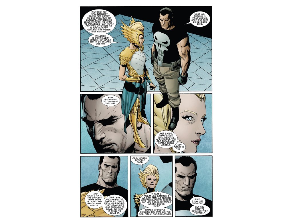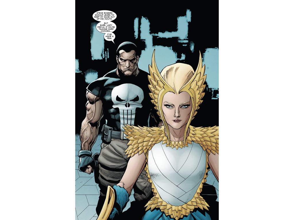 THE PUNISHER LEADS THE CHARGE TO SHUT DOWN THE BLACK BIFROST! Deep in the swamps of Svartalfheim stands the Black Bifrost, Malekith’s corrupted Rainbow Bridge and the only reliable means of travel between the realms with the true Bifrost in pieces. If the gods are going to stop Malekith’s invasion, the Black Bridge must fall. With her son missing and husband injured, Lady Freyja must take up the challenge herself. But she won’t go alone. Hulk (Jen Walters), the Punisher, Blade and Ghost Rider follow the All-Mother of Asgard straight into Malekith’s home territory!