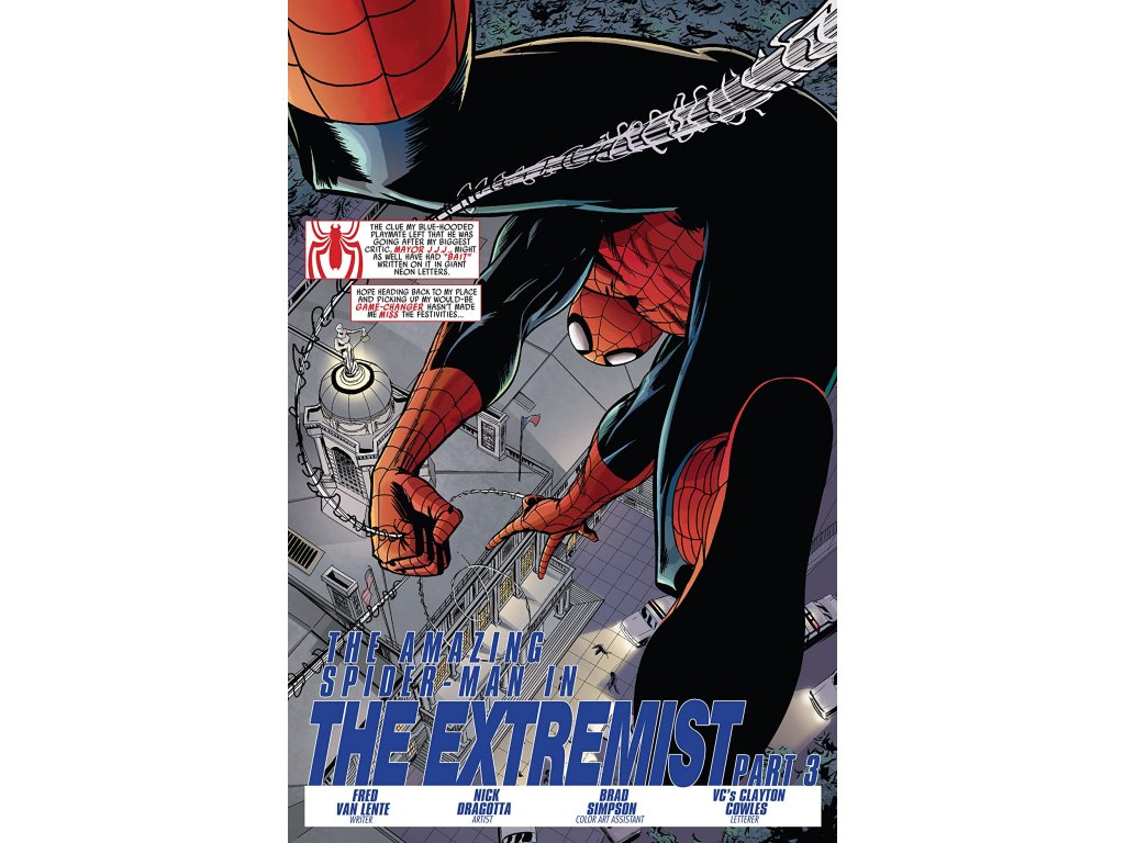 As the Extremist lays siege on City Hall, can Spider-Man save Mayor Jameson? And what secret of the Amazing Spider-Man is the Extremist preparing to reveal?! Meanwhile, pulled back to New York to put the man who murdered her husband in Jail, JACKPOT finds herself face to face with MR. NEGATIVE -- but will she fight the enigmatic, monochromatic mastermind...or join him?!