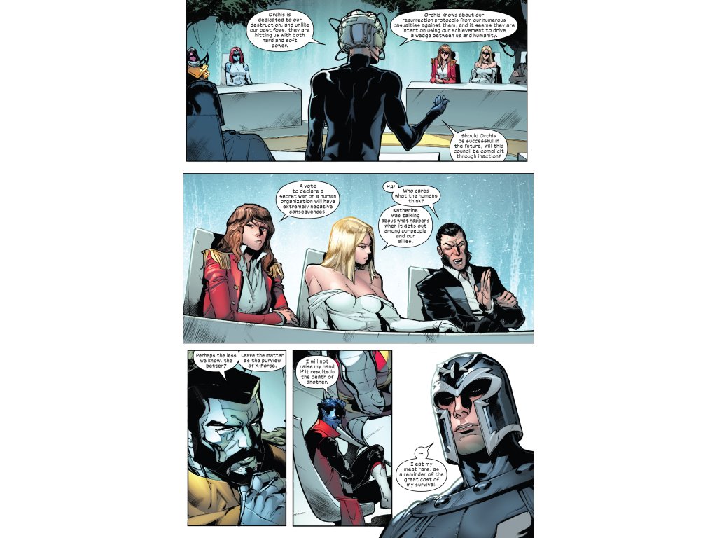 The Quiet Council of Krakoa. The Great Ring of Arakko. The Central Column of Orchis. Three ruling bodies, all about to make vital decisions that will affect their people for years to come…and the X-Men are caught in the cross fire.