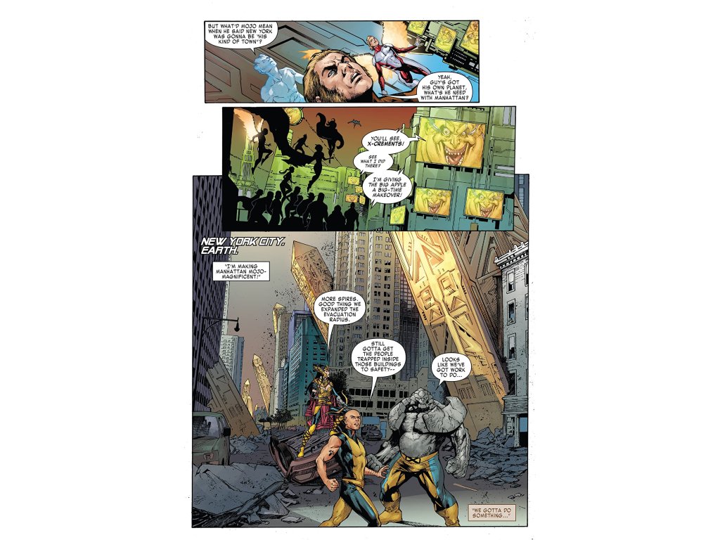 Lights! Camera! Action! MOJO continues his takeover of MANHATTAN, broadcasting every battle and tragic loss as KITTY PRYDE and her X-Men struggle to overcome obstacle after obstacle…until it becomes clear that the only option left is to take the fight to MOJOWORLD.