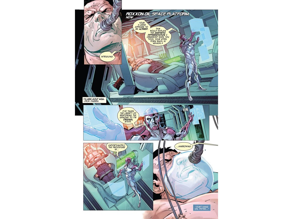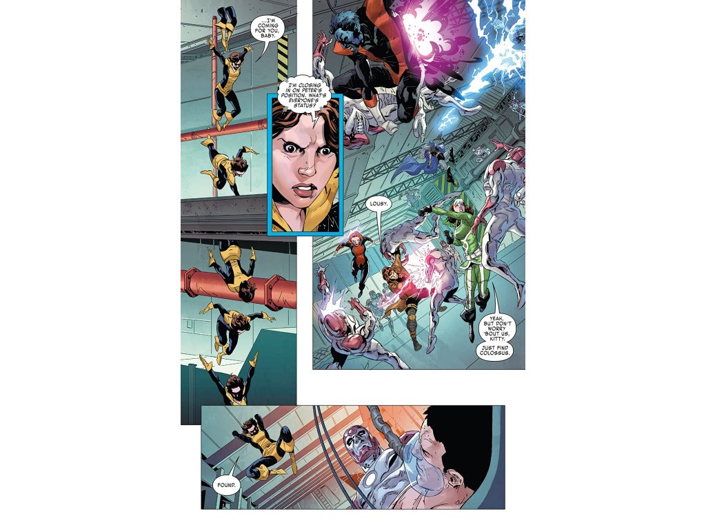 Escape from OUTER SPACE! KITTY and the X-MEN must race to safety or die in the cold vacuum of space! The only obstacles in their way? Human supremacist LYDIA NANCE and the nanite-based AI SENTINEL 0101! Get ready for a fatal confrontation with the GOLD team’s newest nemesis!