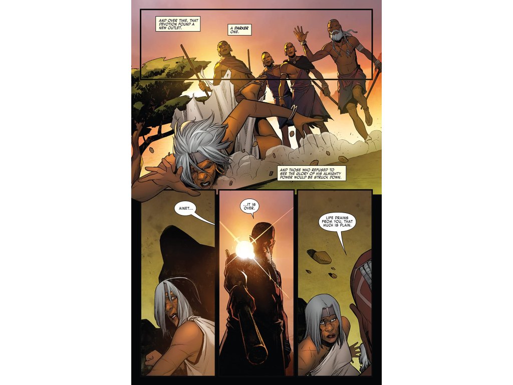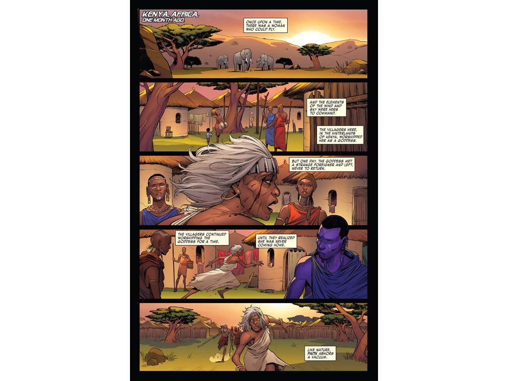Storm returns to the Kenyan village that once worshipped her as a goddess! But now, with her Stormcaster hammer, it’s true…isn’t it? The truth about Storm’s Asgardian hammer is revealed here!