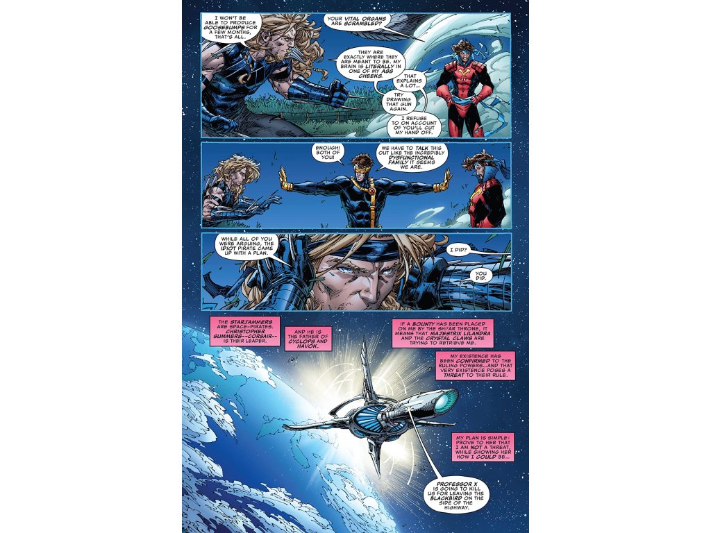 THE SECRET OF ADAM-X – REVEALED AT LAST! It’s the SUMMERS BROTHERS and STARJAMMERS vs. ERIK THE RED and the SHI’AR with the fate of the galaxy at stake, as the full truth behind ADAM-X’s lineage is revealed in a story nearly 30 years in the making!